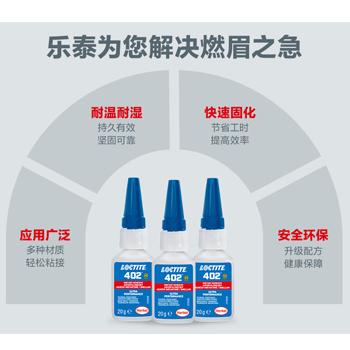 乐泰402瞬干胶是乐泰瞬干胶类型最新型号,其产品特点是耐高温,可以在135℃的高温环境使用,是目前乐泰瞬干胶类产品中耐温最高的产品。那耐高温乐泰402瞬干胶水的实际应用点有哪些呢?汉高达小编今天就来和大家介绍一下乐泰402的使用场景。