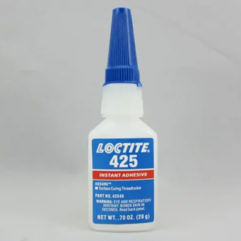 是一种深蓝色的氰基丙烯酸乙酯/脂肪族酯胶粘剂,设计作为锁固金属和塑料紧固件的快速固化、低强度胶粘剂。它设计用于预涂敷或后涂敷。 通过使用乐泰氰基丙烯酸酯活化剂,例如:SF 7113,可以提高固定速度。它通常用于工作温度范围在-65 °F到+185 °F(-54 °C到+85 °C)之间的应用中。乐泰425可在夹具在不到2分钟内完成,24小时内达到全强度。
