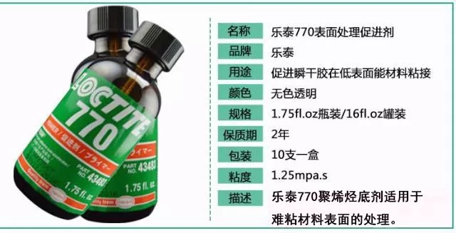 在工业生产上有很多经常用到胶水的地方,有时候你会很苦恼,如天气转凉、粘接材质表面不活跃或是由于工艺原因等,需要胶水快速固化,这时就需要使用乐泰促进剂,帮助胶水快速固化,以达到工业生产需求。