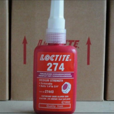 乐泰274螺纹胶红色耐高温,高强度。耐高温达230度,对大多数面包括未清洗表面的紧固件可实现快速固化。适用于M36以下螺栓,拆卸时需加热用工具。剪切强度: 10000(MPa)。乐泰274设计用于固定和密封螺纹接头,以便通过传统的手动工具进行拆卸。固化时不会堵塞粘接金属表面之间的空气,并防止因振动和冲击引起的接头松动或泄漏。典型用途乐泰274包括中等强度的紧固和螺纹接头的密封。低粘度使其更容易进入螺纹。