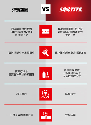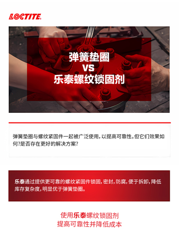 乐泰螺纹锁固剂作为更高效的紧固方式,与弹簧垫圈对比,又有怎样的优势?事不宜迟,一起看结论!
