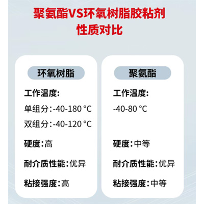 在选择环氧树脂胶粘剂和聚氨酯胶粘剂时,应考虑以下因素粘接材料的类型、所需的粘接强度、耐温和耐化学性能的要求,以及工作环境的特点。