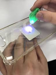 饰品用无影胶(UV胶),如:硅胶按键,各种金属的标牌与徽章,高档钮扣等各种工艺品表面的披覆与滴胶,同样与环氧体系的一样也有软胶与硬胶之分,但主要不同的就是无影胶耐黄变,紫外线光固化,速度快,效率高等特点。