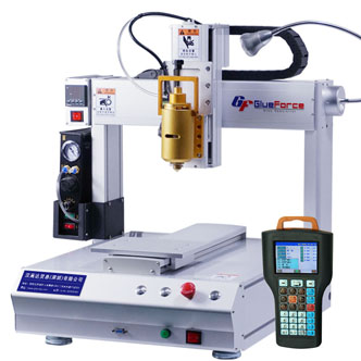 双组分点胶设备又叫双液点胶机、AB点胶机等,双液型点胶系统(灌胶机),由三部分组成:两个压力桶(主要作用是向点胶阀提供并储存两种不同的胶水),AB胶点胶阀(主要作用是将两种胶按不同的比例混合在一起,在一定的时间内发生发应后凝固),还有一个是控制器又称点胶机(主要作用是控制点胶量和点胶的频率和精度)