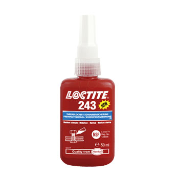具体用途:乐泰243固化性能很好,不仅在作用于活性金属(诸如黄铜、紫铜),同时作用于惰性基材,诸如不锈钢和镀层表面。此产品耐高温抗油脂能容许各种轻微表面污染,诸如切割、润滑、防腐蚀和保护液体内所含的油污的。其特点是耐机油/中强度,快速固化,可用于惰性表面,容油性好。易拆卸,可在轻微油质的工作表面上使用。用于乐泰预涂剂 Dri-Loc 螺栓拆装后重装时锁固;可以用于M20以下螺纹的锁固与密封。