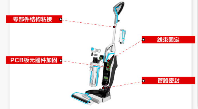 拖地机乐泰胶水使用案例,智能化生活已经慢慢进入普通百姓家,各种各样的清洁机器的出现改变了人们的生活方式,今天汉高达小编为大家介绍拖地机的各部件的粘接案例。