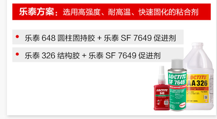 乐泰方案:选用高强度、耐高温、快速固化的粘合剂