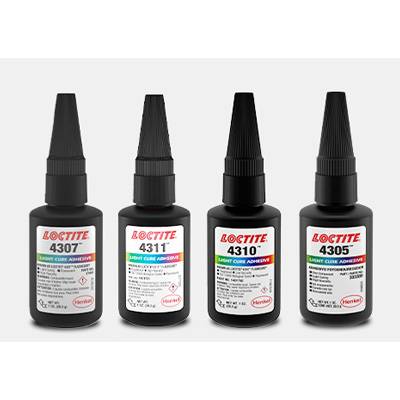 在低强度的紫外线或可见光照射下,可以在5秒内实现固定适用于需要湿气固化的应用,可以在无光照的阴影条件下固化其瞬间固定的能力消除了对促进剂的需求并且减少了应力开裂及白化风险。如:乐泰4311、乐泰4307等。