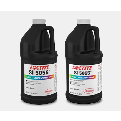 可在高强度紫外线或可见光下可以固化为柔性、热固性弹性体可提供湿气固化,确保了在光照不充分的条件下完全固化;可在数秒内完成固化,缩短工艺进程,为硅胶材料、塑料与金属提供高强度粘合。如:乐泰5056、乐泰5055等