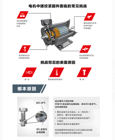 工业电机根据工业生产的需要,选用合适的电动机类型进行制造,并在工业场景中将电能转化为机械能,广泛应用在各个行业的生产设备中,如泵、风扇、传送带和压缩机等。这是如何确保电机螺纹紧固件的可靠性成了一个迫切需要解决的问题。