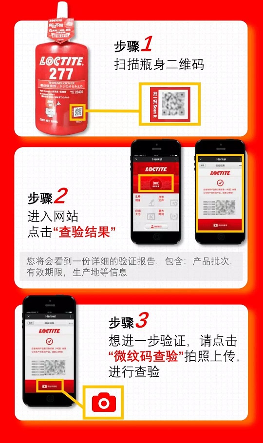 微纹码用肉眼可简单分辨,但如果想确切查验,可以拿出手机进行以下操作,只要简单3步就可以在线进行产品查验: