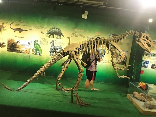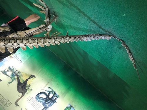 博物馆的恐龙骨架是有金属套固定托着的,但还是有些骨片脱落了。