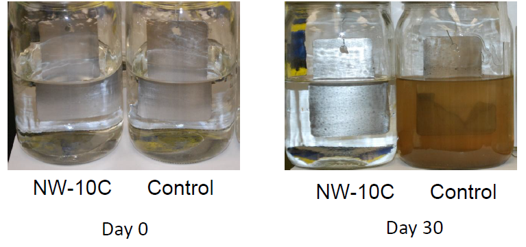 B.TDS 500ppm自来水加1%NW-10和不加1%NW-10的对比