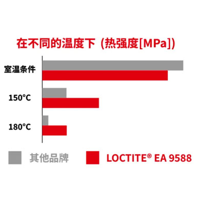 180℃的极端高温条件下,LOCTITE EA 9588耐高温性能远高于同类型环氧胶