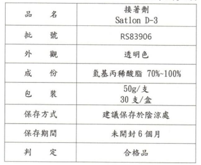 台湾协达satlon D-3温升胶的产品参数: