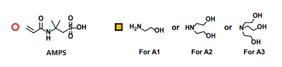 第三,加入了醇胺这一成分,同时所选择的可以自聚反应单体AMPS带有磺酸基团,两者之间可以发生酸碱反应。