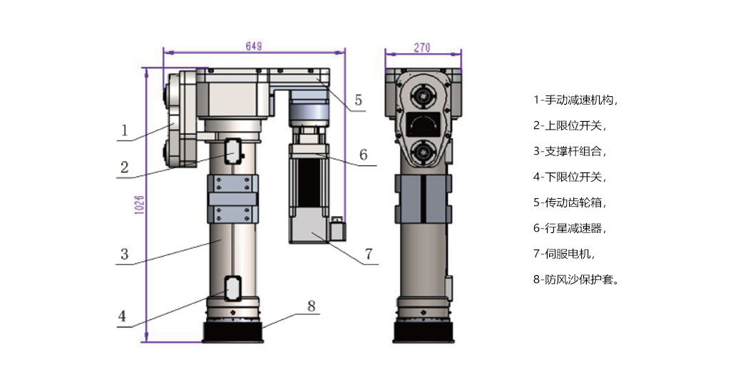 1、采用伺服驱动器+伺服电机+机械传动的电动技术方案,相比液压驱动的技术方案,提高了电动调平系统的响应速度和控制精度,提高了电动调平系统的可靠性和可维护性。1.系统介绍