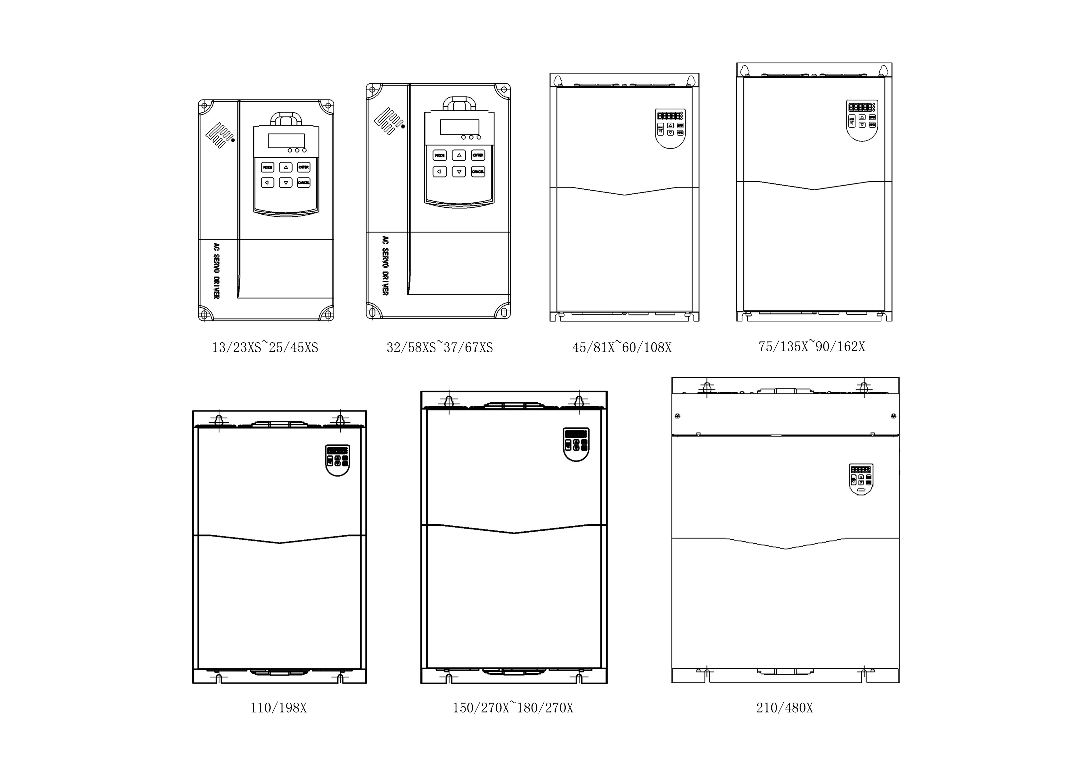 NAS G系列交流伺服驱动器结构由小到大分几类,外形如下: