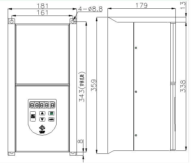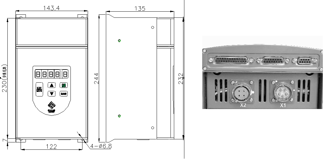 1.MDS10D550直流伺服驱动器外形尺寸示意图(单位:mm):