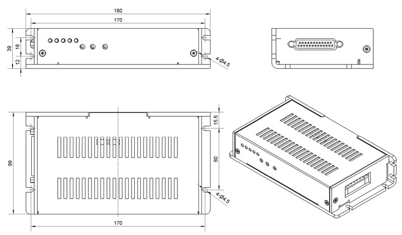 4. MDS50D2500T 直流伺服驱动器外形尺寸示意图(单位:mm):