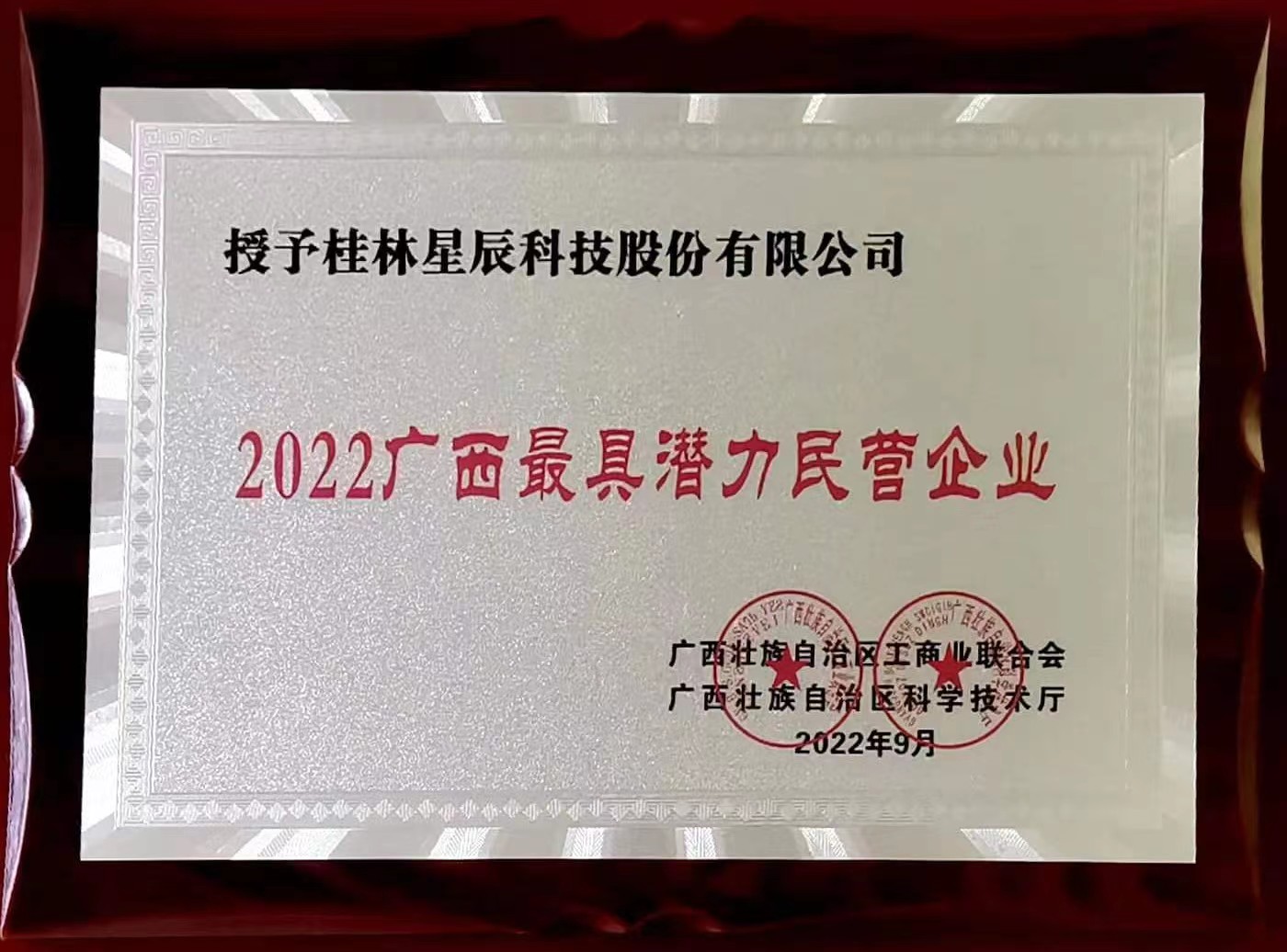 2022年9月6日,“2022广西民营企业100强”发布会在柳州召开。广西工商联根据企业在国内市场占有率、行业排名和拥有核心技术等领域上的潜在实力,评选出了“2022广西最具潜力民营企业”“2022广西最具竞争力民营企业”等榜单。亿万28网页在线玩-亿万28入口网页版-万28官网下载最新版-亿万e网址pg-亿万28网页版网址-亿万28赏金女王-亿万28pg电子科技在众多企业中脱颖而出,成功评选为“2022年广西最具潜力民营企业”。